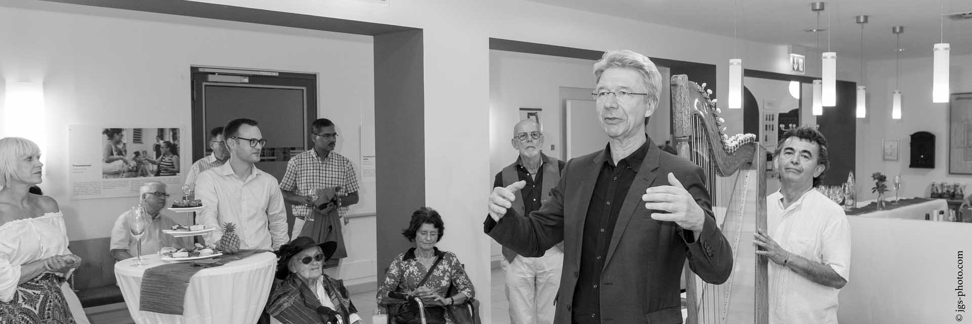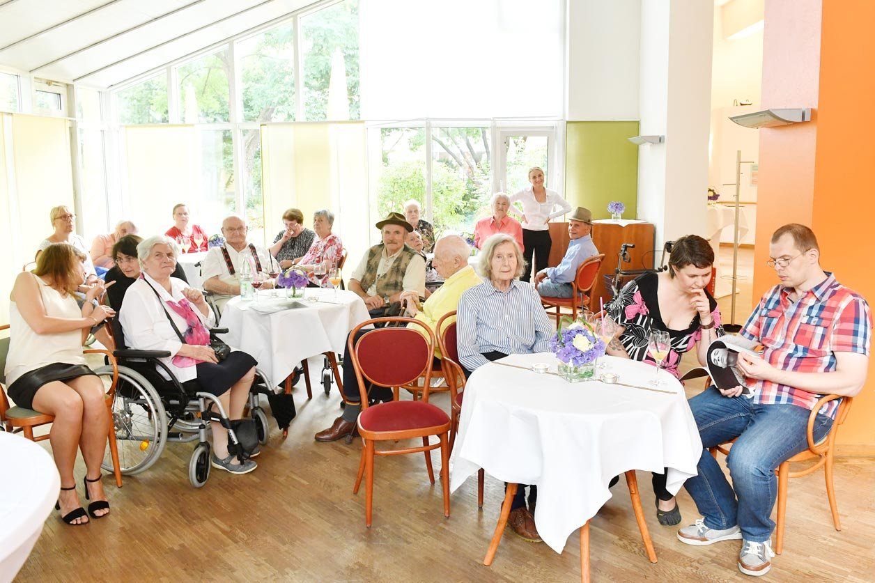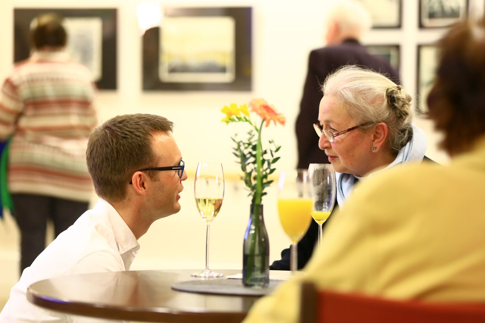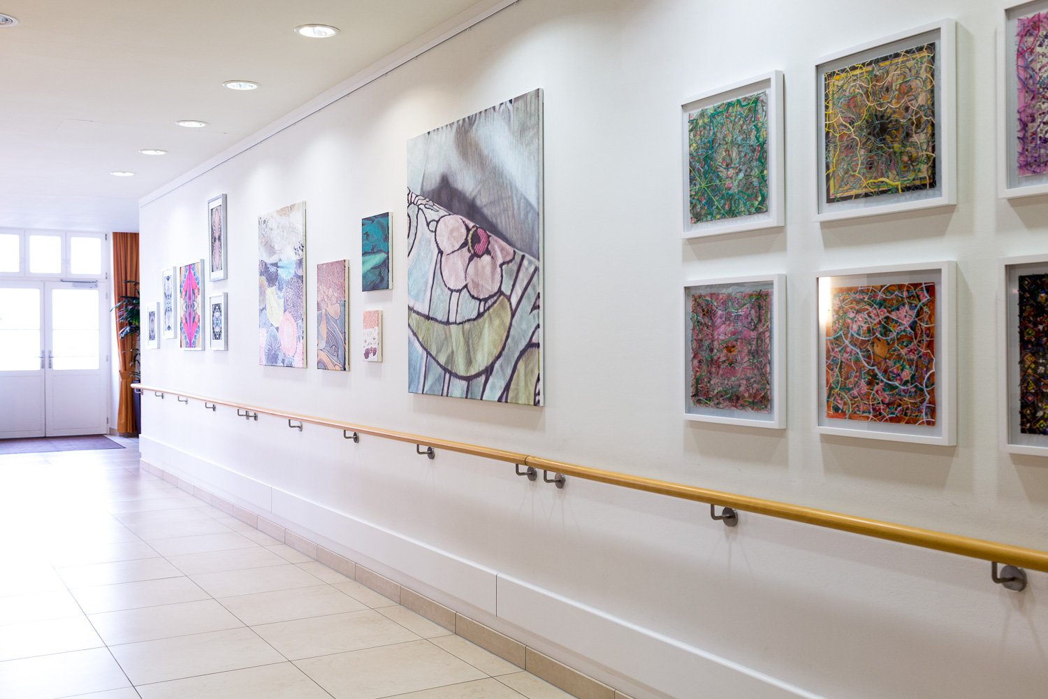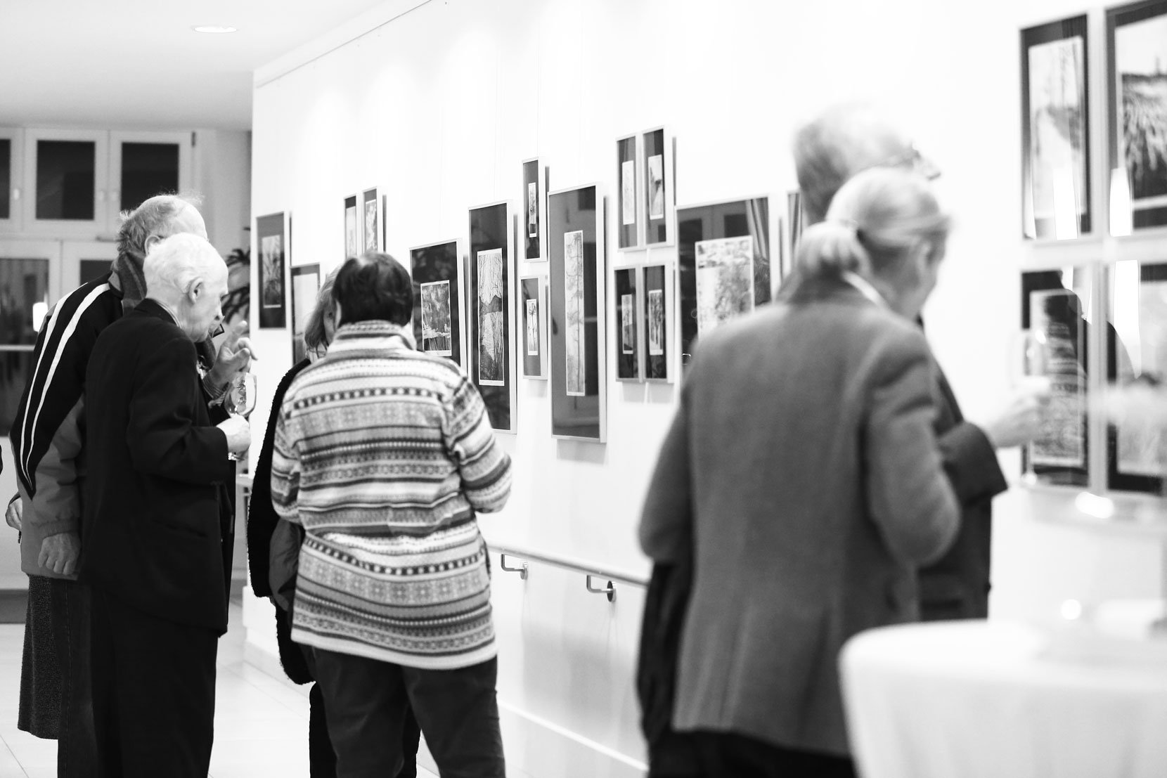 Kunst schafft Kommunikation und bietet Raum zur Reflexion: Unter diesem Motto steht das Begleitprogramm zur Ausstellung Pflege meets Migration. Die BewohnerInnen und Angestellten des Alten- und Pflegeheimes Haus Heilig Geist wurden zu einem Kunstgespräch eingeladen und befassten sich unter anderem mit den verwendeten Materialien, der Farbwirkung, der Kompostion und der Maltechnik, aber auch mit dem künstlerischen Entstehungsprozess und der Bedeutung der einzelnen Werke. Anschließend diskutierte die Gruppe über eigene Erinnerungen und Erfahrungen zum Thema Migration, die durch das Betrachten und Besprechen der Bilder wachgerufen wurden.