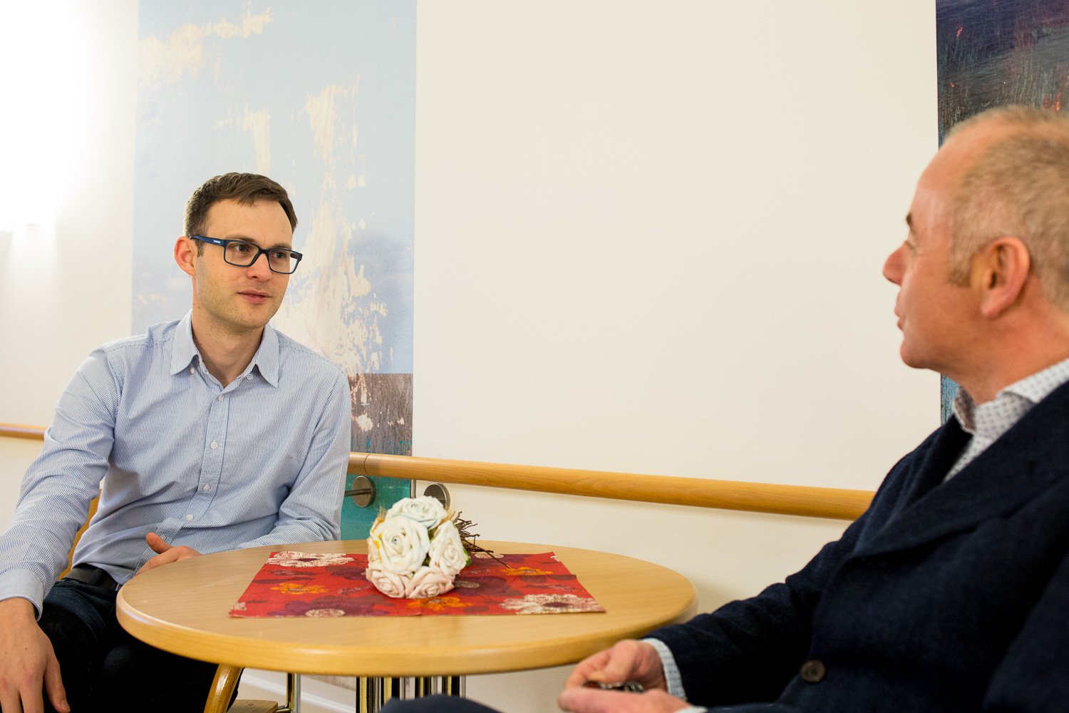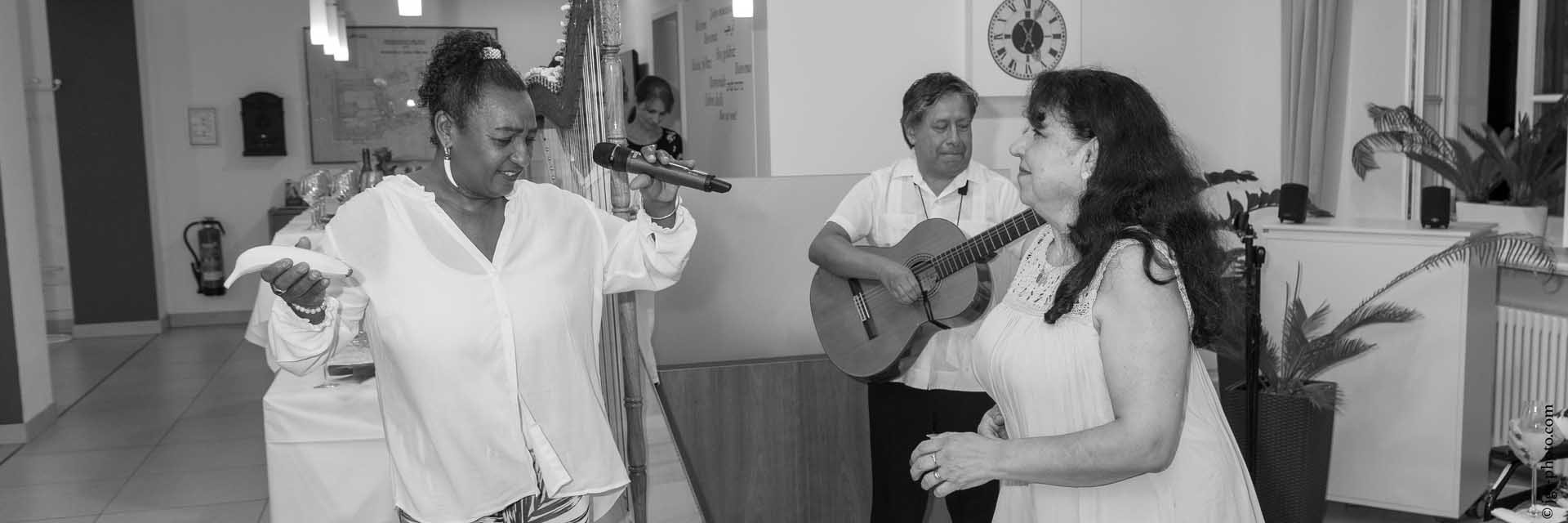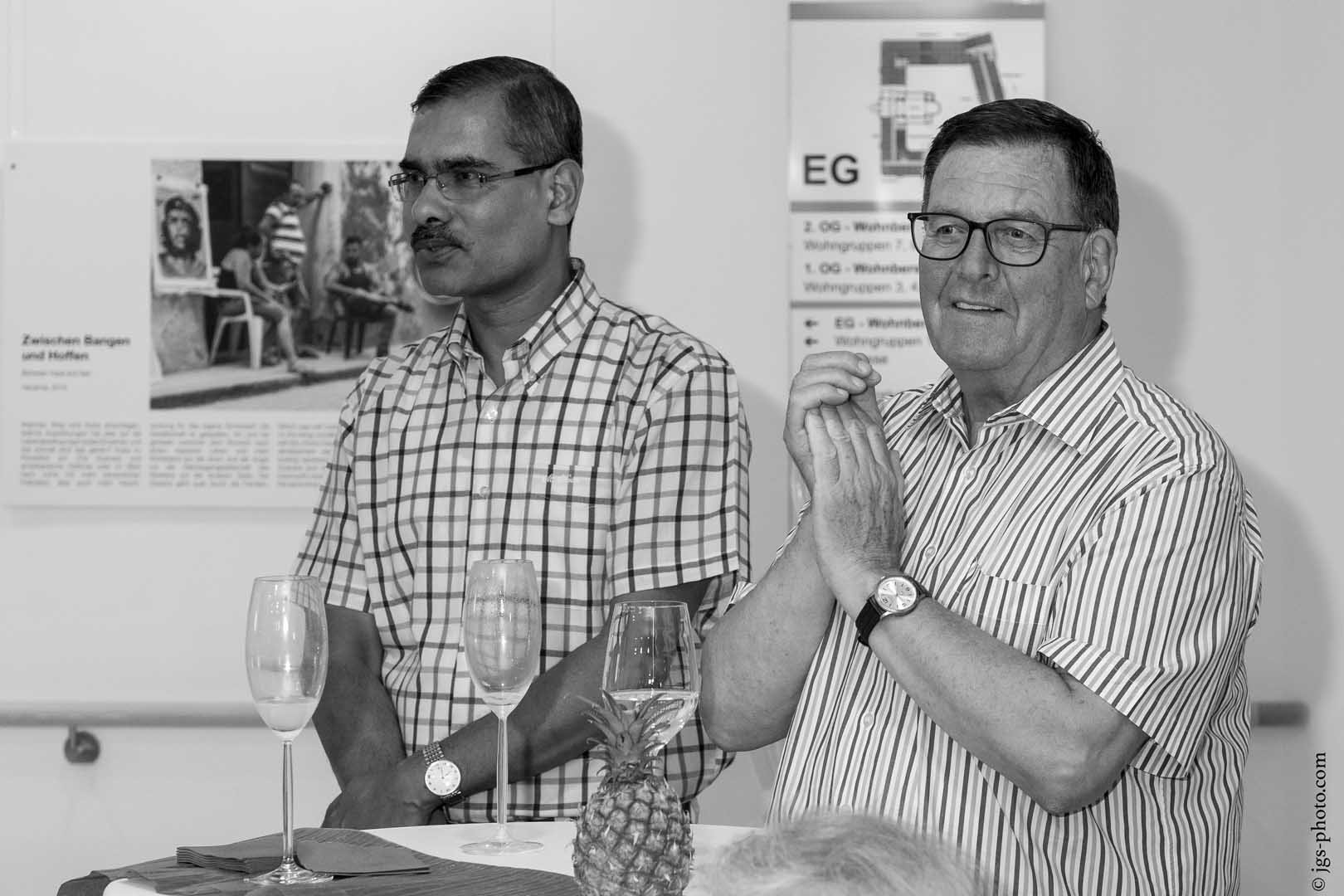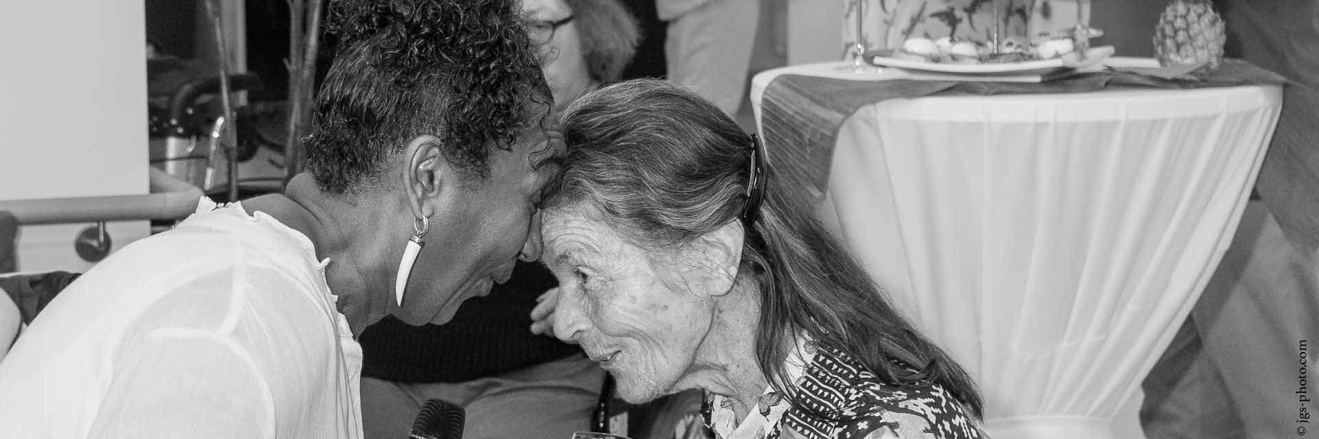 Kunst schafft Kommunikation und bietet Raum zur Reflexion: Unter diesem Motto steht das Begleitprogramm zur Ausstellung Pflege meets Migration. Die BewohnerInnen und Angestellten des Alten- und Pflegeheimes Haus Heilig Geist wurden zu einem Kunstgespräch eingeladen und befassten sich unter anderem mit den verwendeten Materialien, der Farbwirkung, der Kompostion und der Maltechnik, aber auch mit dem künstlerischen Entstehungsprozess und der Bedeutung der einzelnen Werke. Anschließend diskutierte die Gruppe über eigene Erinnerungen und Erfahrungen zum Thema Migration, die durch das Betrachten und Besprechen der Bilder wachgerufen wurden.