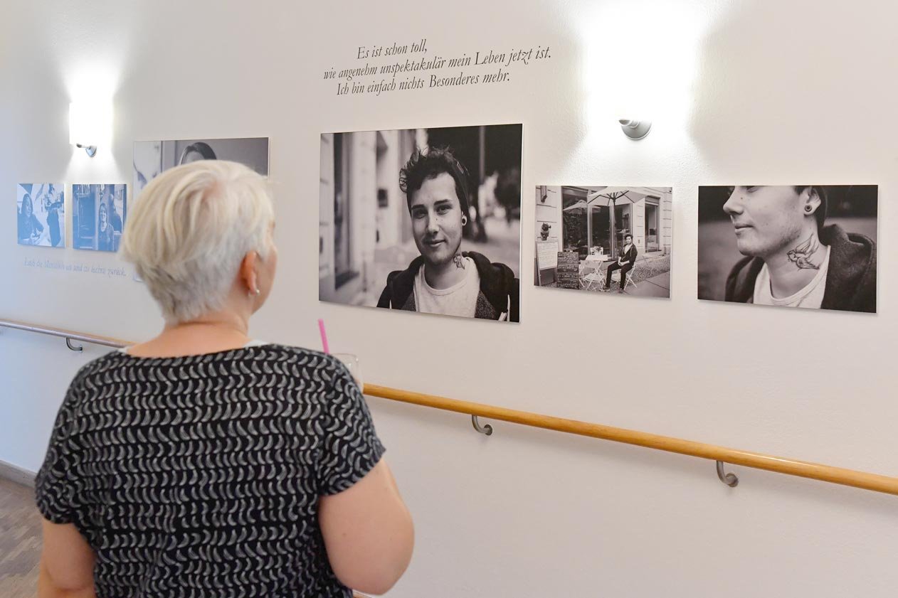 In ihren Bildern zeige Stahl transidente Menschen in ihrer Umgebung. Menschen, die studiert haben oder auch nicht, mit Ausbildung oder ohne. Mit Partner, mit Kind, mit Hund oder alleine lebend. Menschen eben. Mit allem, was ihnen gut tut und Geborgenheit gibt – und mit allem, was sie belastet. Die Bilder betonen die Normalität dieser Leben. Anders die dazugehörigen Texte: Hinter jedem Menschen steckt eine Geschichte. Die Geschichten, die transidente Menschen zu erzählen haben, sind beeindruckend und machen nachdenklich. Sie handeln von Verletzungen, Selbstzweifeln – und von unglaublich viel Mut und Stärke. Aber auch vom kleinen Glück im Alltag und von Menschen, die für andere da sind.