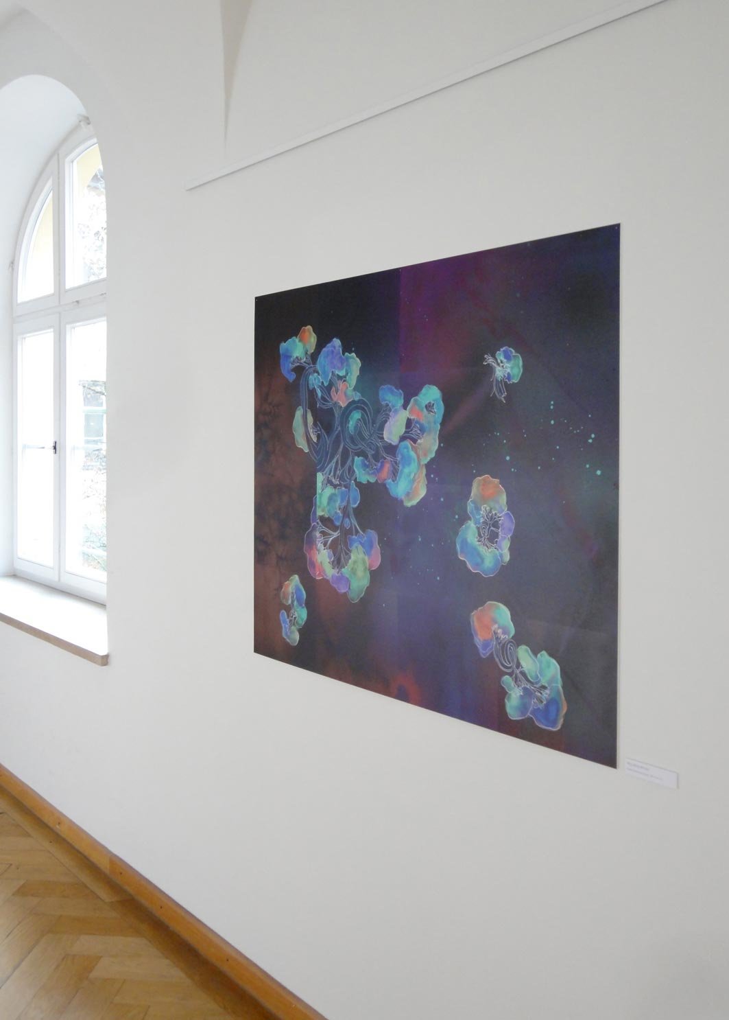 Die US-amerikanische Künstlerin Christine Nguyen lebt und arbeitet in Long Beach, einem Stadtteil von Los Angeles. Sie hat in Kalifornien Kunst studiert und sich in der Ausbildung der Fotografie verschrieben. Christine Nguyen verwendet Fotografie jedoch nicht im klassischen Sinne, denn die Künstlerin verzichtet in ihrem Schaffensprozess vollständig auf eine Kamera. Die Ausstellung „Reprinted: Christine Nguyen“ ist die erste Einzelausstellung der Künstlerin in Deutschland und zeigt Kunstwerke der letzten zehn Jahre. Nguyen beschreibt ihre Darstellungen als eine Form von Utopia, in der alles miteinander verbunden ist. So ist es also nicht verwunderlich, dass sich Strichzeichnungen, die an Zellstrukturen erinnern, neben wolkigen Farbnebeln, ähnlich Aufnahmen von fernen Galaxien, wiederfinden.